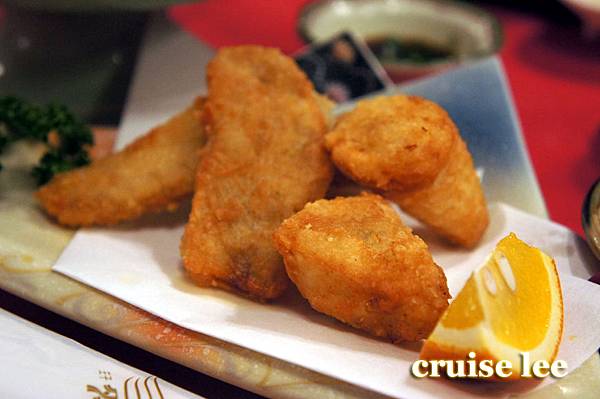 炸河豚上次有吃過,這次是有附大魚刺的,河豚肉很軟嫩而且很豐厚的塞在麵衣內炸,到這裡其實已經快飽了