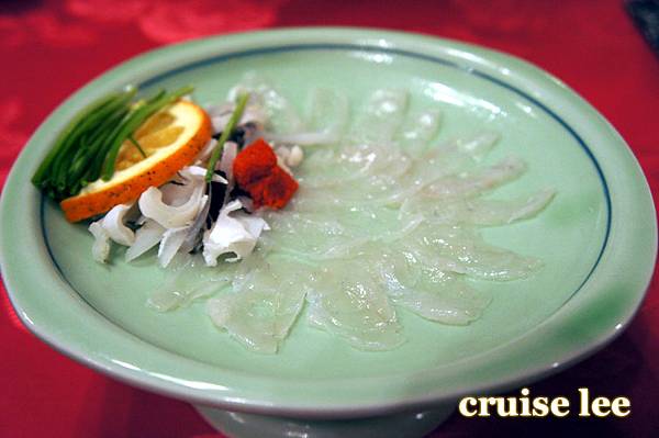河豚刺身應該是吃它的嚼勁,另外還付也是很有嚼勁的魚皮,兩種一起吃那種在口內的雙重嚼勁實在是很有趣,再沾點專用清爽柚子醬,非常之享受!
