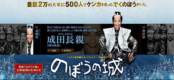 日本戰國時代、電影大作「のぼうの城」2012年秋公開予定