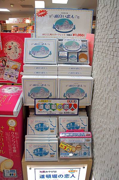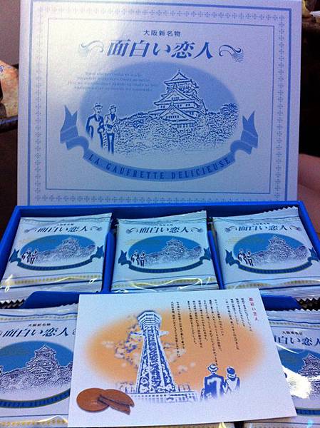大阪 面白い恋人 (搞笑戀人、有趣戀人),是吉本興業旗下よしもと倶楽部販賣的餅乾;北海道 白い恋人 (白色戀人),是石屋製菓的產品。在日文字上搞笑戀人比白色戀人多了一個"面"
