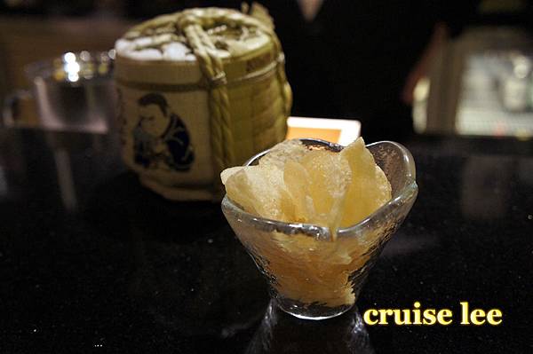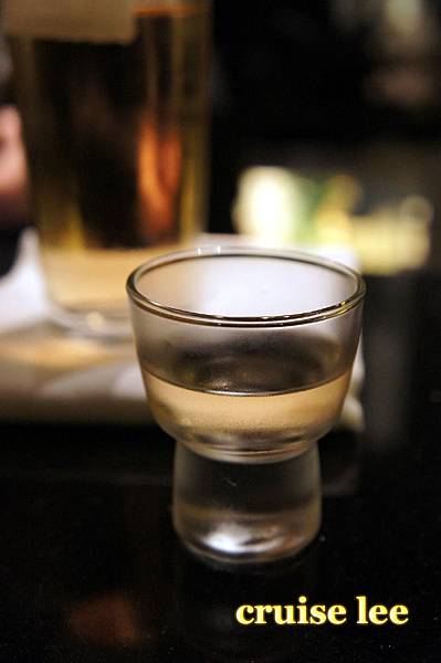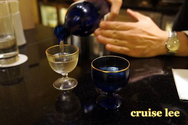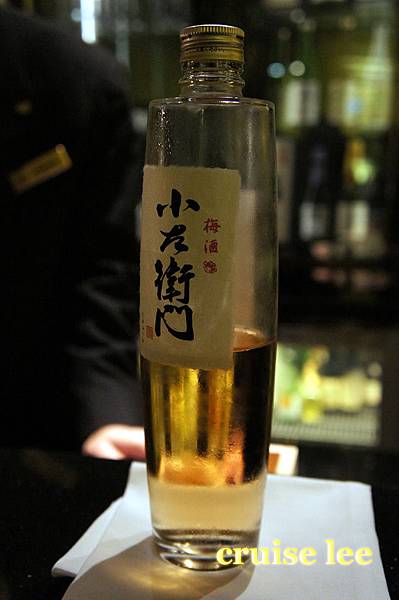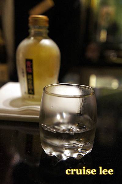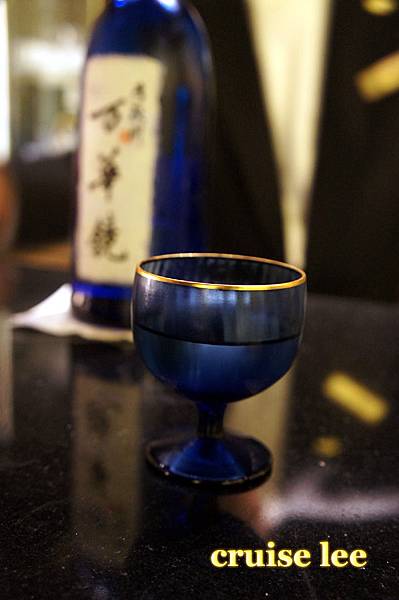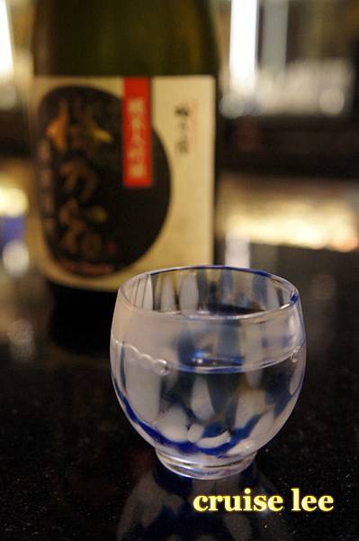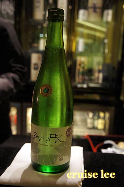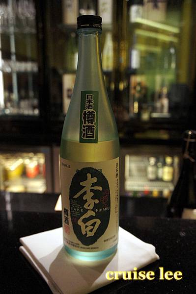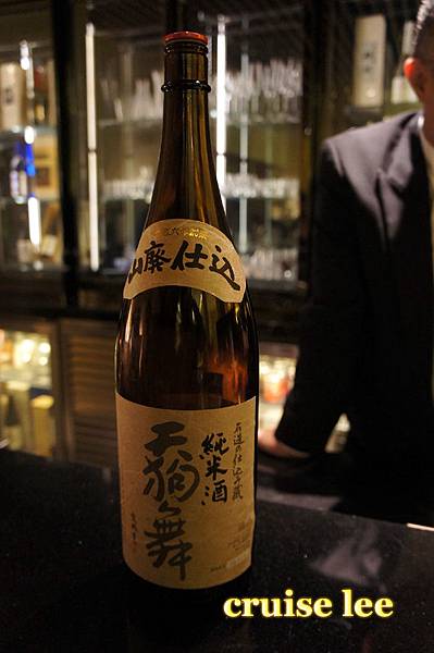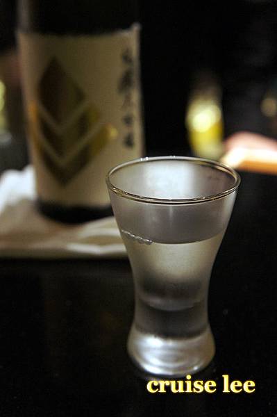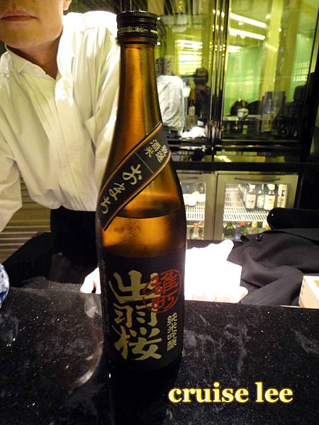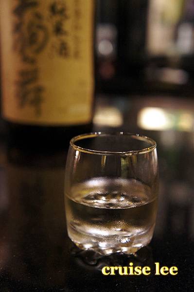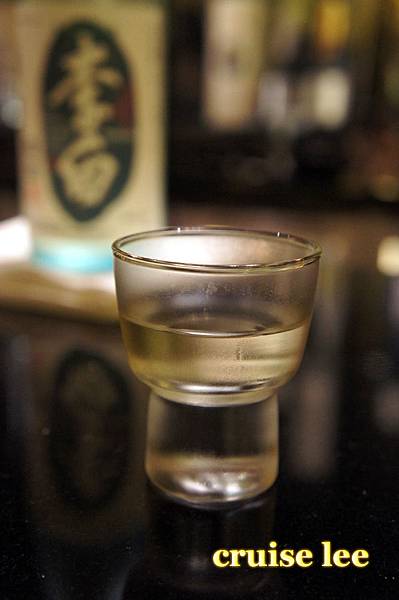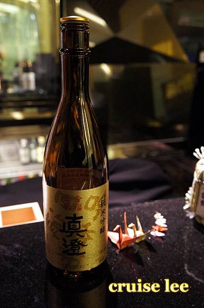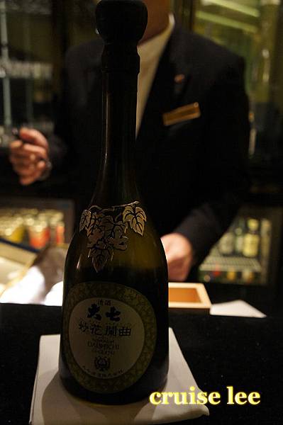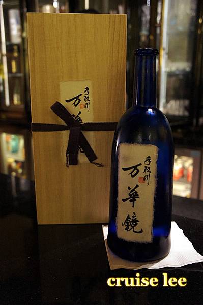喝茶清除口中料理味休息時間,展示了一瓶很貴的日本酒