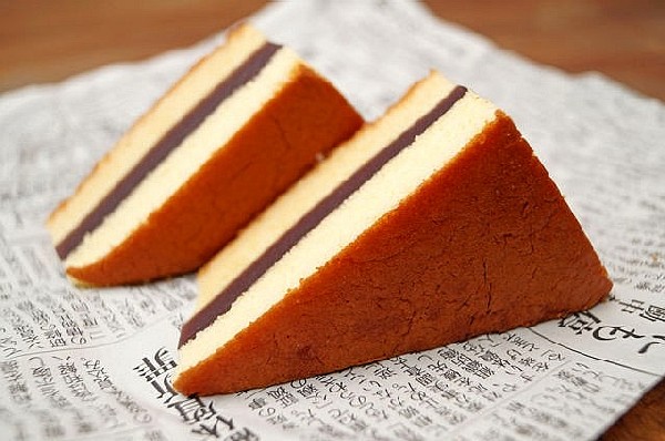 主要是將羊羹夾入カステラ長崎蛋糕內,又名羊羹カステラ。正式的誕生歷史已逸失,維基百科所載現存製作羊羹卡斯提拉最悠久的店舖是橫濱櫻木町1916年創業的「コテイベーカリー」,根據該店所述羊羹長崎蛋糕約為明治後半到大正初期間誕生的,主要流行於關東到中部一帶。由於製造耗時,不只要製作長崎蛋糕,還要煮紅豆、寒天等材料來製作羊羹,因此近年來已經很少甜點店、麵包店在販賣它了