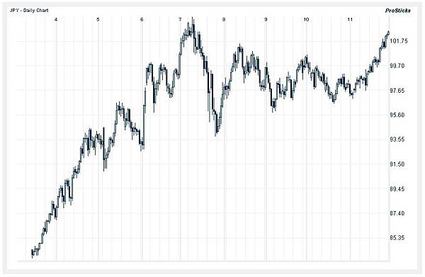 上一波日圓大貶值從去年底今年初發動,一路從約78日圓對1美元貶破100日圓,很多投顧分析一片看好上看120日圓,然後在七月無預警拉回到94日圓左右,然後120日圓之說就此消失了。結果11月又來一波貶值,現在看是小貶,不知道能不能期待貶到120日圓