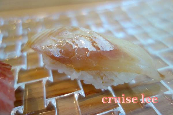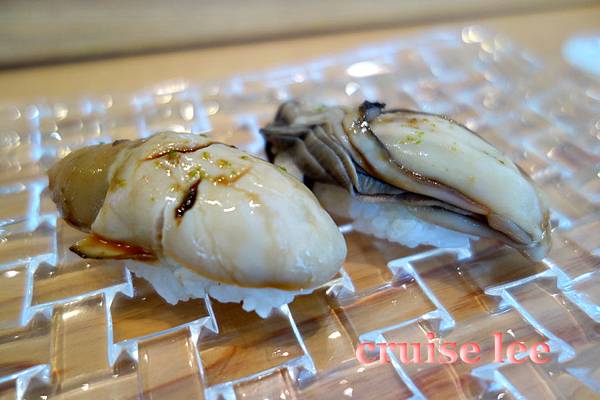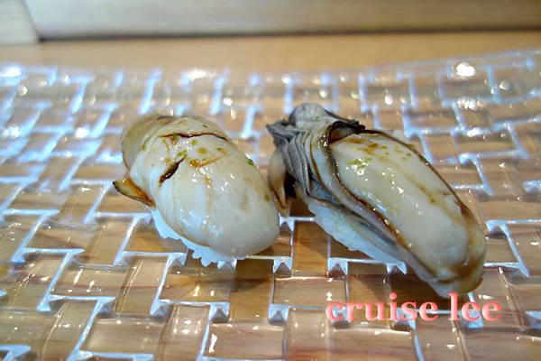 牡蠣握壽司!這技法真的是神人才有,牡蠣先極微煮過,保留下生軟度與牡蠣味,但表皮可握不散開,整顆牡蠣對半橫切各握成一貫,使用了ゆず皮屑,入口第一感是非常低溫,除了牡蠣味還有一股甜味,非常有趣的一貫