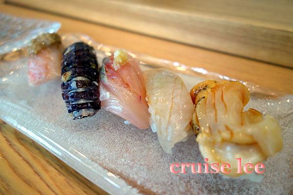 吃到這裡覺得有什麼卡在心頭說不上來,覺得好像吃了很多,又好像有什麼沒有吃到,今天點的是一份おまかせ握5,000円與一份群来膳特選握6,800円,這時特選握上桌了!瞬間我知道我想知道的是什麼了,所以立刻拿起筆記數回去吃了多少貫