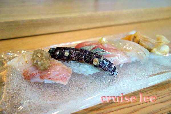 前一晚吃了鮨 田なべ,這個中午馬上再吃握 群来膳,趁味覺記憶尚未褪去前好好體驗2家不同的手藝。這裡也是使用山わさび,不過醋飯的米粒較小煮的較軟較鬆,醋味也比較淡。板前師傅問要不要直接捏一盤給我們,當然是緊急阻檔表示我們要慢慢的吃