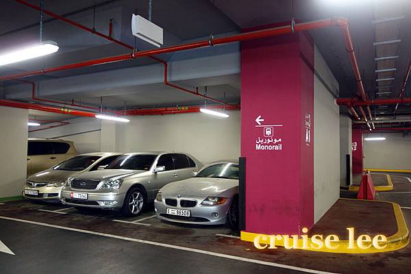 轉左邊要收錢,轉右邊也要收錢,直直走非房客不給過,這時我才驚覺我剛的車票25AED比捷運一日券還貴,但是都穿過停車場上了賊車應該沒有人會不花這個錢吧,真是高竿的路線
