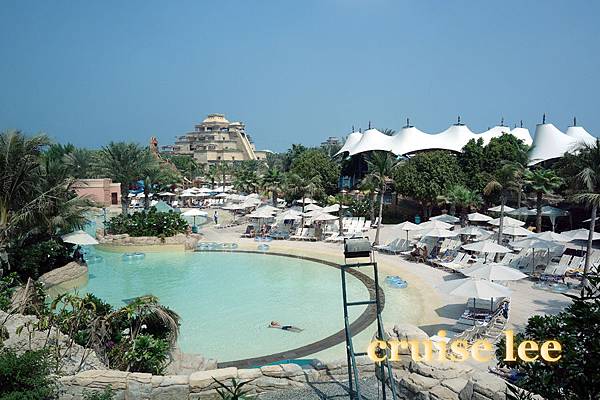 進站後似乎剛走一班,等了20多分鐘,來了一班直達亞特蘭提斯飯店的車,也好就從最後面開始一遊