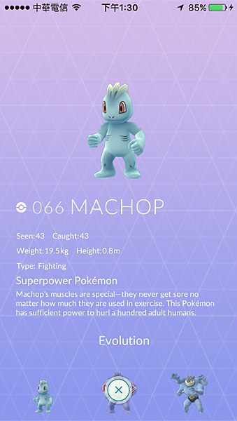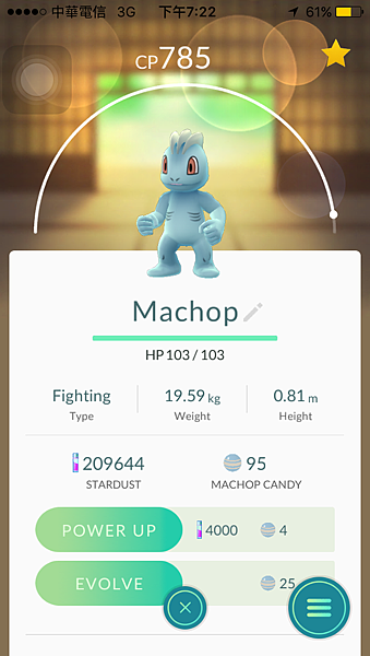 目前腕力還是100%收服,當晚未使用到大師球,cp300以下紅球、cp300~400看難度顯示選紅球或藍球,400以上藍球再給糖,抓到最高的cp就是785,IV86