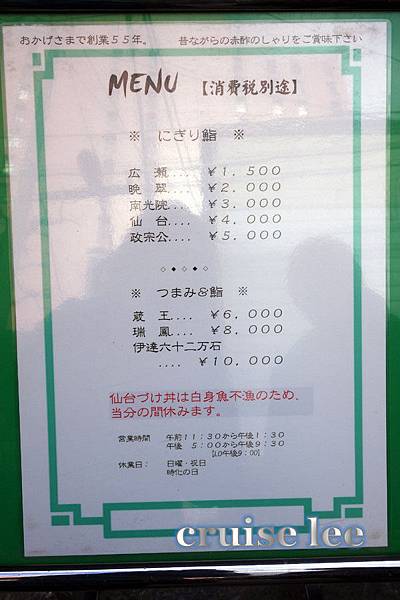 這次列了幾家たべログ上日本1000位且有興趣的食堂:かつせい、小判寿司、源氏、中華そば嘉一、弘寿司,其中前兩家入選2017米其林指南宮城特別版的ビブグルマン(無星級,可以吃到3500日圓以下的套餐或單品)