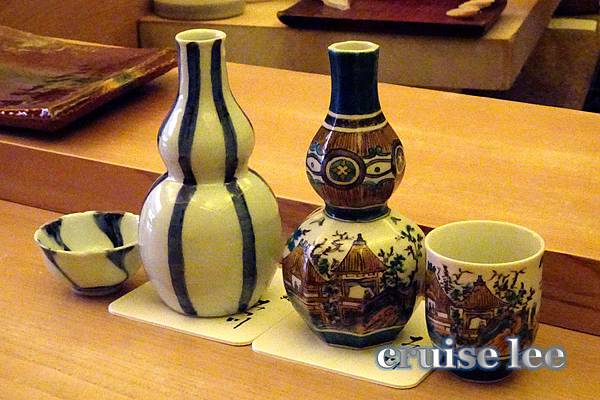 室外真的滿低溫的,所以點了燗酒,於是獲得了2套九谷燒酒器照,九谷燒酒器簡單的說價格約1萬日圓