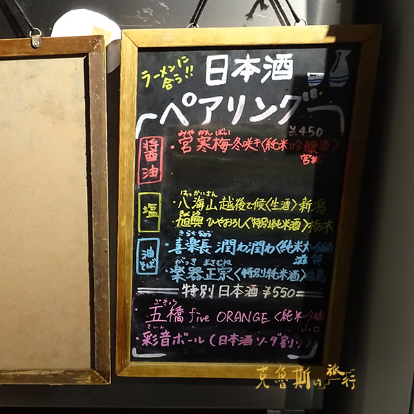 這間店主打的是拉麵搭配日本酒,當然一進店就開始找日本酒