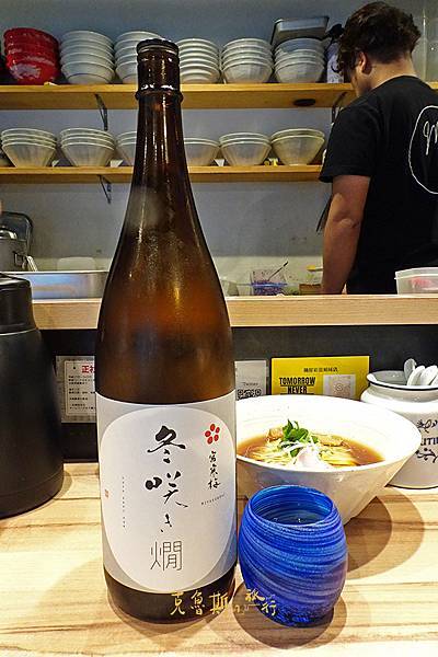 拉麵上桌習慣先喝一口湯頭,這湯頭很熟悉耶最近常喝到,銀座八五、入鹿TOKYO六本木都是同一系的,接著無意識就喝了一口宮寒梅,好合、好搭!於是拉麵前半段一直反覆著喝湯頭與日本酒,日本酒與醬油其實都是發酵系的同宗,接下來的搭配就進入旨味、甘味、澀味等的分子世界了,店家選酒有厲害,大多數人一聽到拉麵或是麻辣鍋,都會覺得味道重不敢搭纖細的日本酒,這家可以很簡但打破這個迷思,進店門檻也不高,有興趣可以來試試看喔